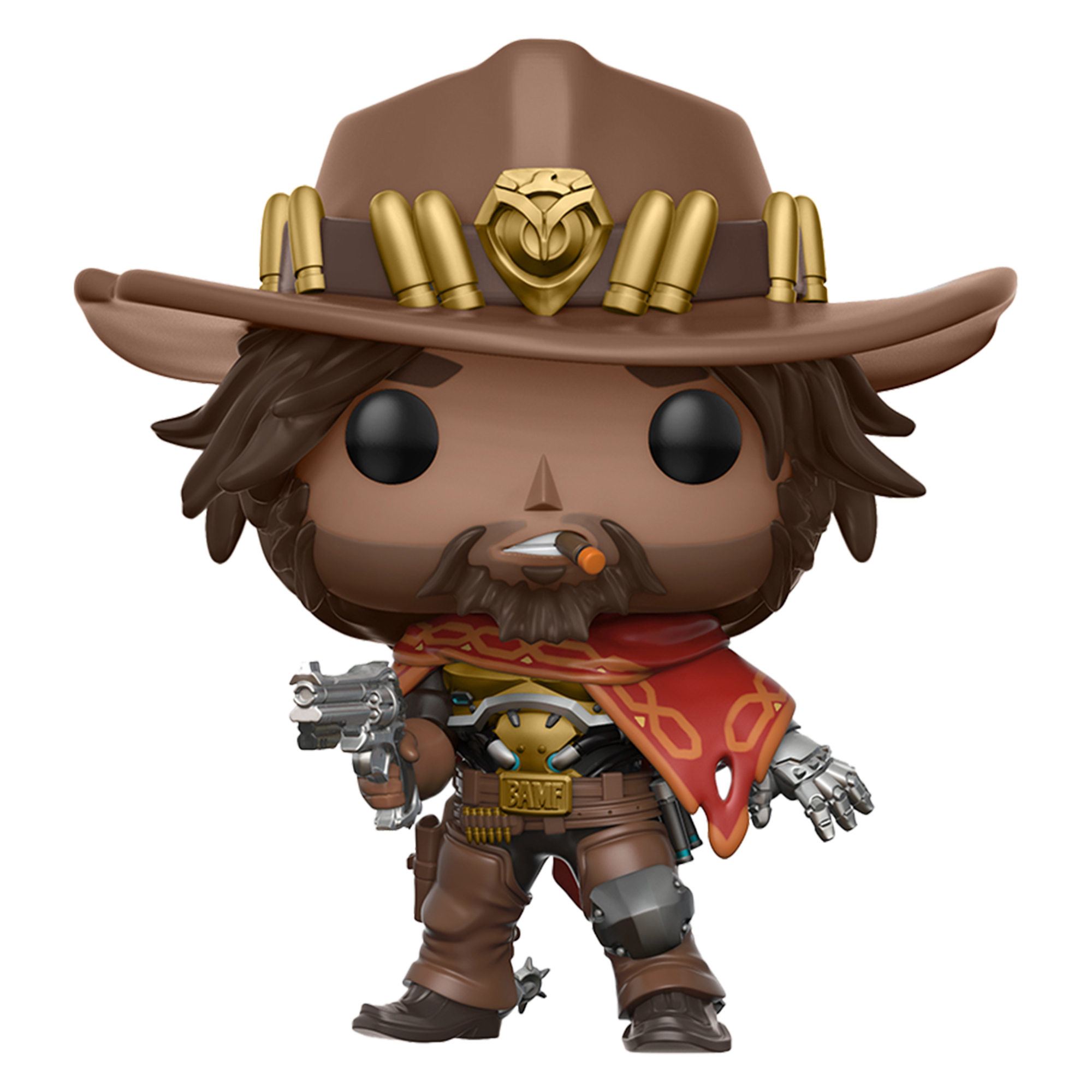 Фігурка McCree (МакКрі) з колекції присвяченій популярній комп'ютерній грі Overwatch, створена в фірмовому стилі POP від компанії Funko. МакКрі — колишній член банди Мерців, пізніше був затриманий. Вступив в групу Дозор через своєї майстерності у використанні зброї. На механічній руці зображений знак Карателя (Марвел).