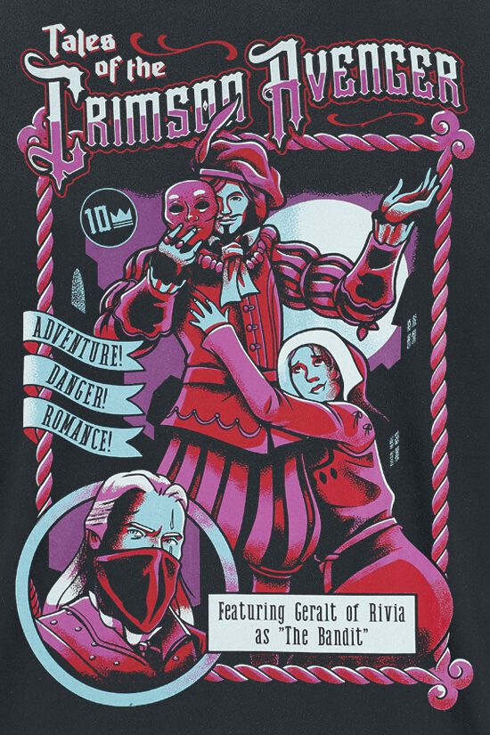 Оригінальна футболка The Witcher 3 Crimson Avenger Premium для фанатів гри Відьмак. Яку виставу збирається розіграти Лютик? Пригоду? Драму? Роман? Це нам належить дізнатися, але те, що Геральт буде в ролі Бандита – вже вирішено на всі 100%.