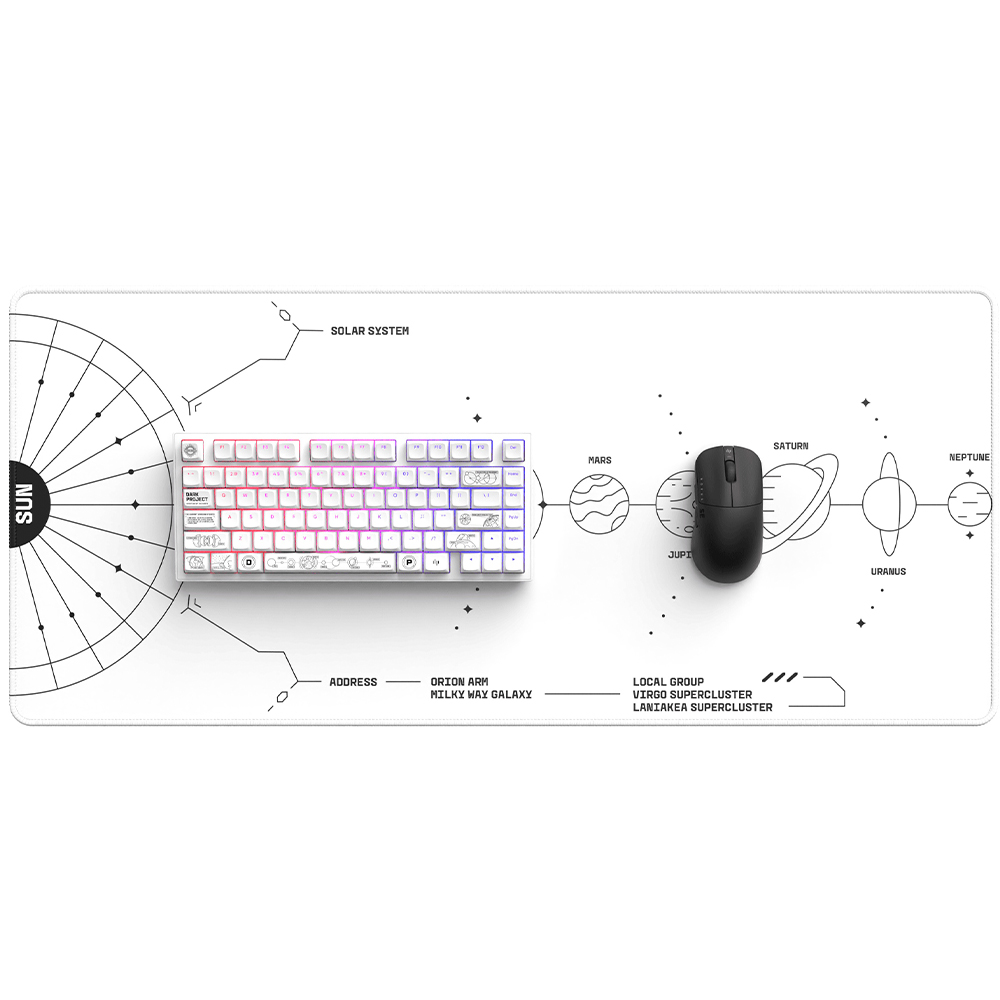 Килимок для миші DARK PROJECT Terra Nova у білому кольорі не просто аксесуар, а справжнє вікно у Всесвіт для вашого робочого місця. Цей великий ігровий килимок створений для тих, хто цінує не лише продуктивність, а й унікальний стиль, що підкреслює їх індивідуальність.