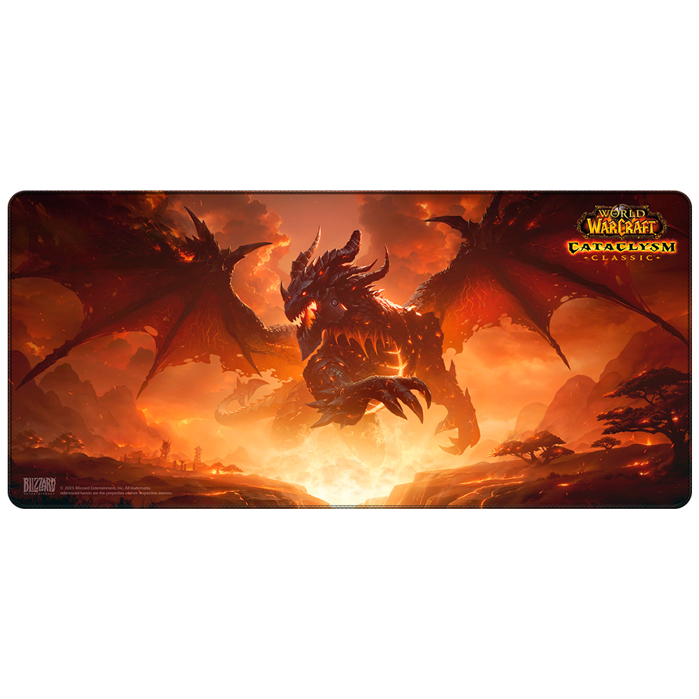 Розв'яжіть лють Смертекрила (Deathwing) з офіційним килимком для миші XL World of Warcraft: Cataclysm Classic. Це колекційне видання, що зображує вогняний гнів культового дракона, переносить руйнування Азероту прямо на ваш стіл — обов'язкова річ для шанувальників класичного хаосу.
