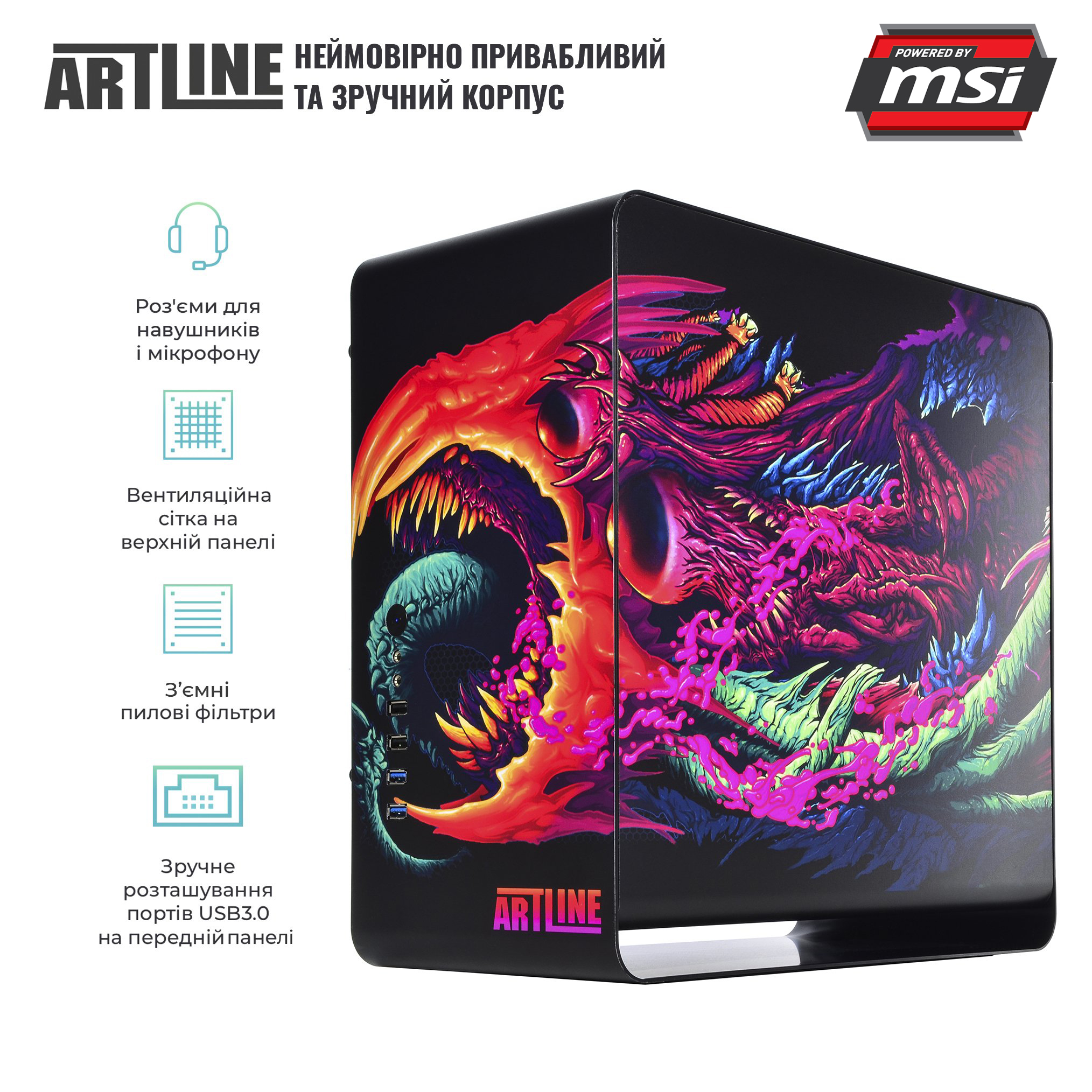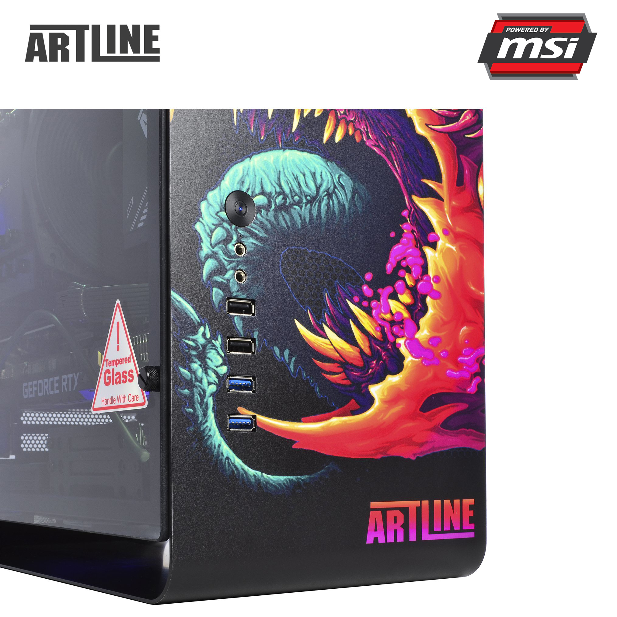 Серія ARTLINE Overlord DRAGON – це високопродуктивні комп'ютери, які володіють найбільш топовою «начинкою» від відомих брендів, в тому числі від компанії MSI. Як провідний ігровий бренд в світі, MSI користується найбільшою довірою в світі ігор і кіберспорту. Серія DRAGON перейняла також унікальний дизайн від MSI, який здатний підкорити самих завзятих геймерів. Моделі даної лінійки розраховані на користувачів з найбільш серйозними вимогами, адже під оболонкою сховалося найпотужніше «залізо», зібране з найбільш актуальних новинок.