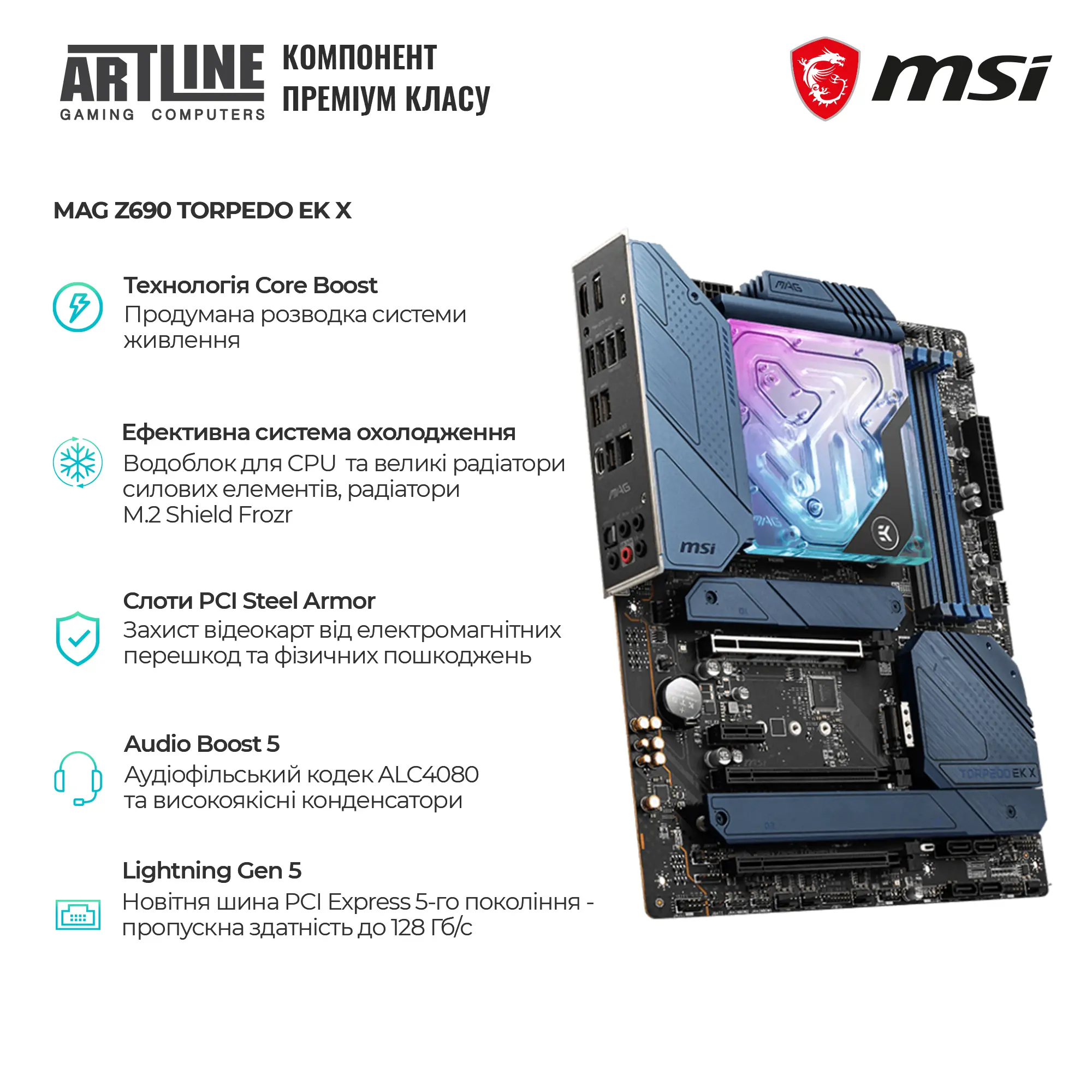 Материнська плата MAG Z690 TORPEDO EK X з чіпсетом Intel Z690 забезпечує стабільну роботу всієї системи та надає можливість для подальшого розширення та модернізації комп'ютера.
