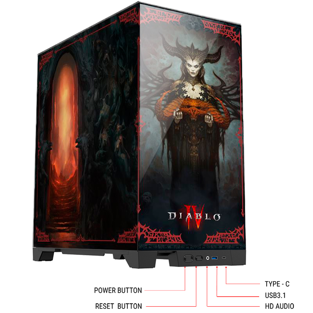 Покращіть свою ігрову систему з ігровим корпусом Diablo IV - Lilith — шасі колекційного видання, яке поєднує в собі потужність, стиль та охолодження нового рівня.