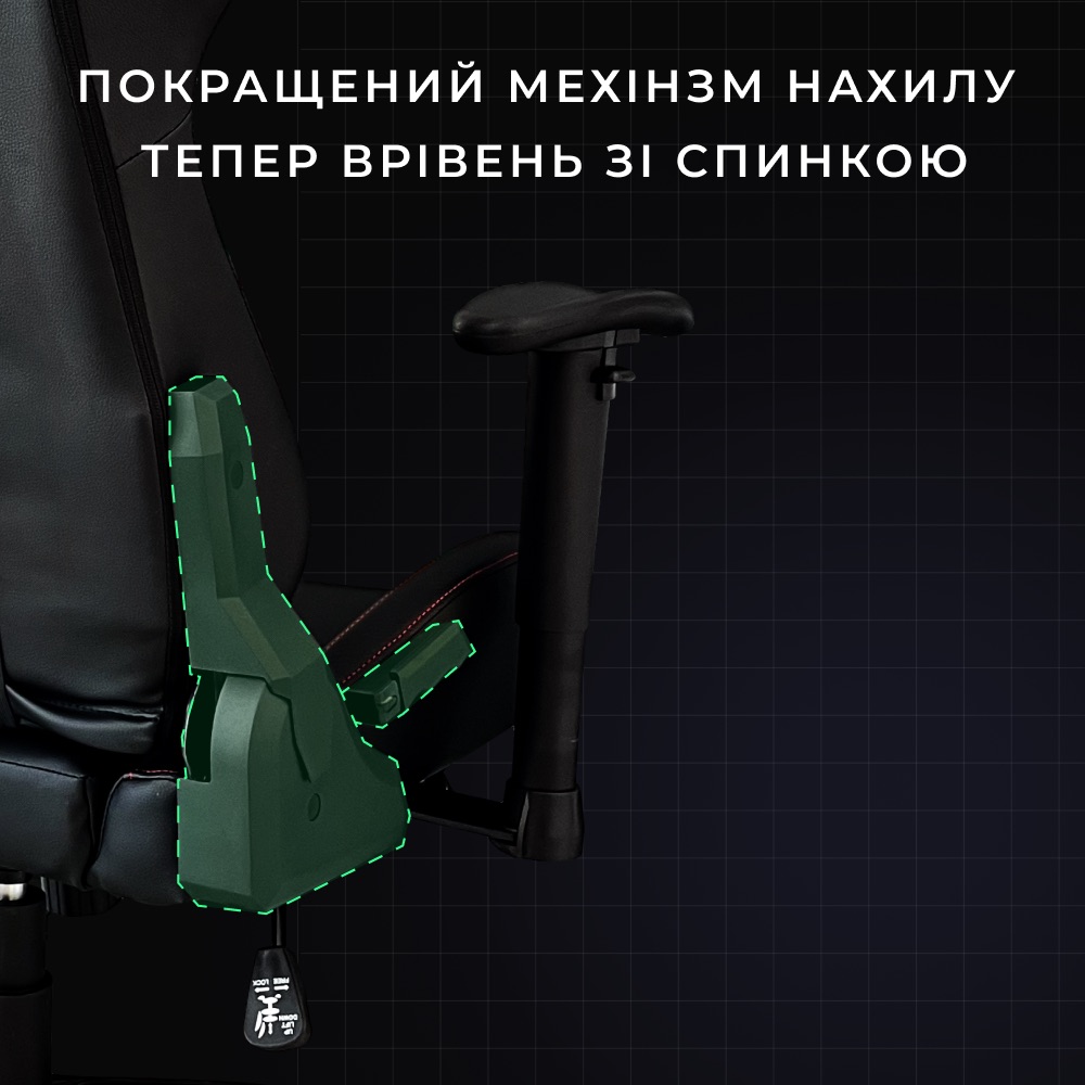 Спинка крісла відкидається на кут до 180 градусів. Ваше ігрове крісло не замінить зручного ліжка, але дозволить повноцінно розслабитися у потрібний момент.