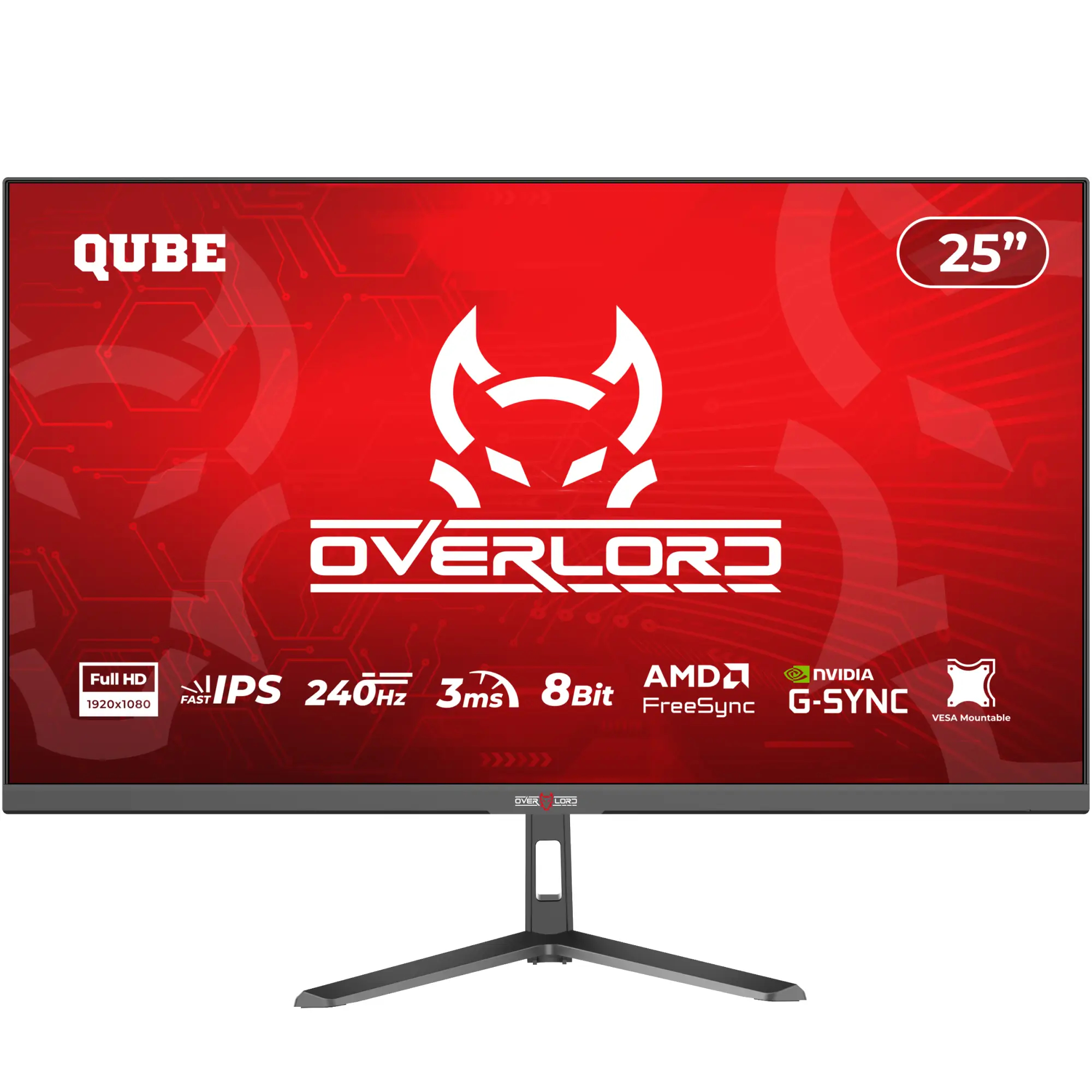 Qube Overlord G25F240 оснащений сучасними інтерфейсами підключення: 2×HDMI 2.1, DisplayPort 1.4 та аудіовихід 3,5 мм. Він сумісний із настінними кріпленнями VESA 100×100, що розширює можливості встановлення. Модель працює від зовнішнього блока живлення потужністю 36 Вт, не має вбудованих динаміків і камери, що робить її легшою та універсальною. Цей монітор можна замовити в інтернет-магазині Artline – доступна ціна, висока частота оновлення та надійна збірка роблять його чудовим вибором для геймерів.